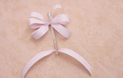 E com a cola quente cole o laço de fitinhas sobre o laço da fita poá.