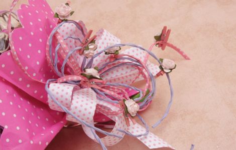 Com o próprio fecho prático, prenda o laço no arranjo. Distribua os mini pregadores pelo laço e pelo papel e está pronto seu buquê!